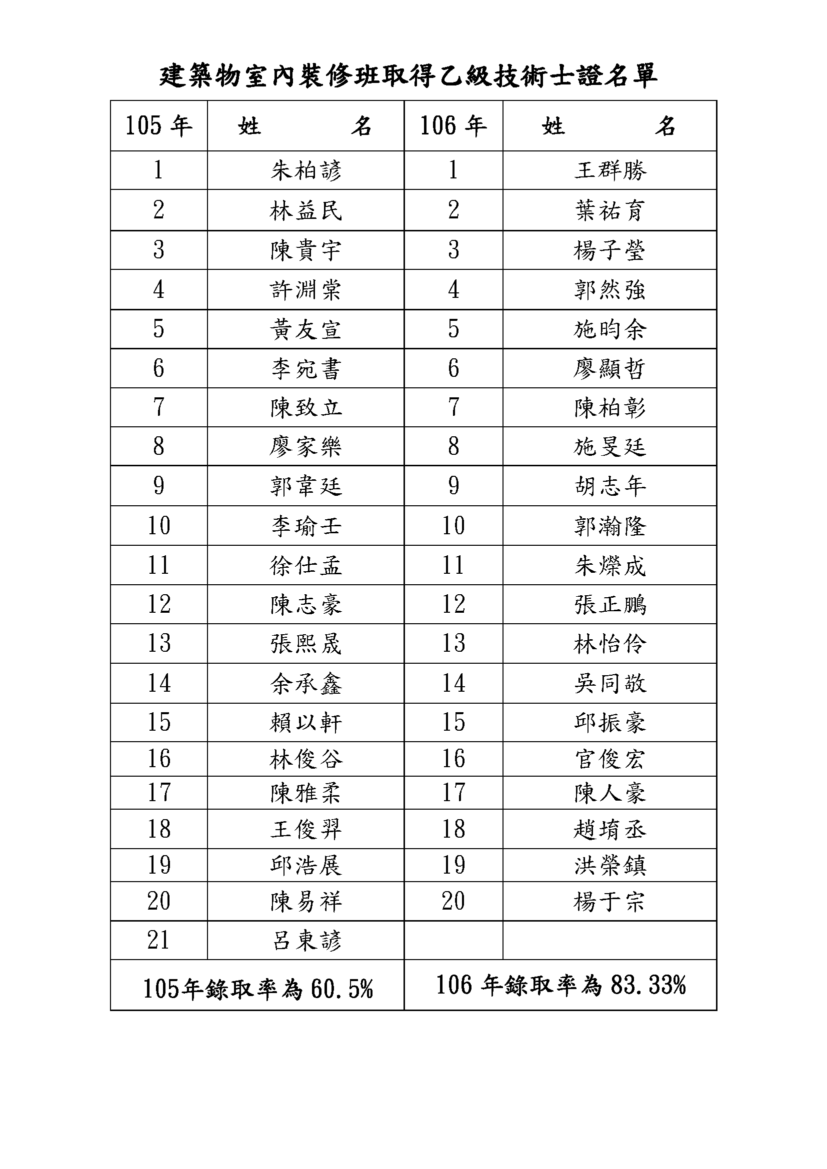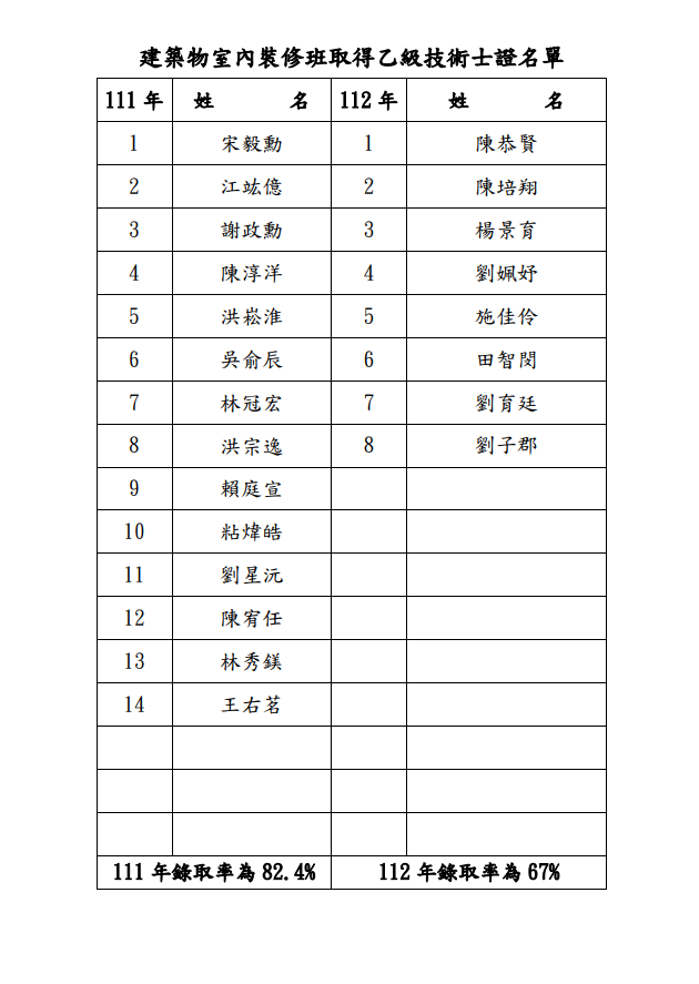 歷屆裝修乙級考取名單
