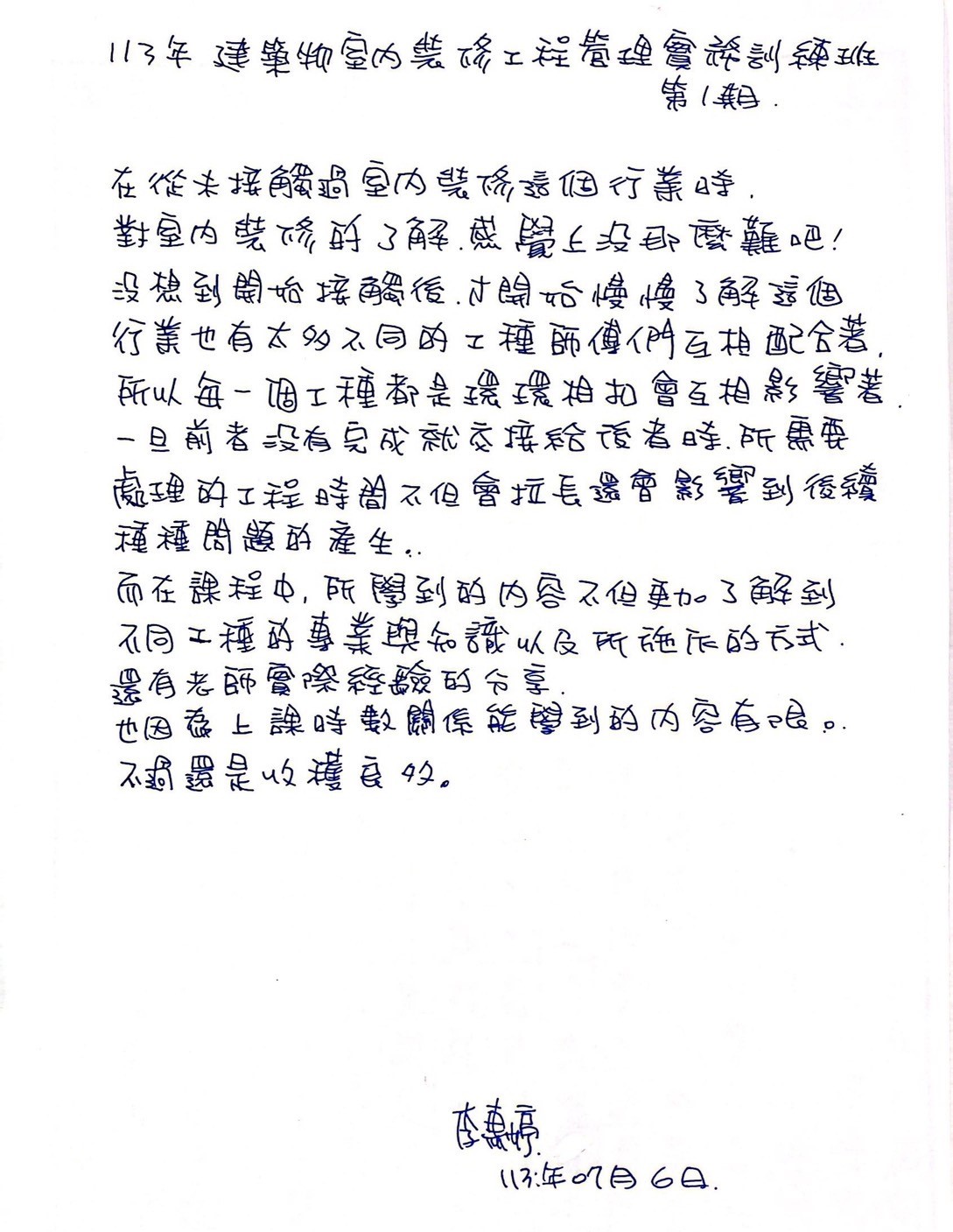 產投班-113年度建築物室內裝修工程管理實務訓練班第01期