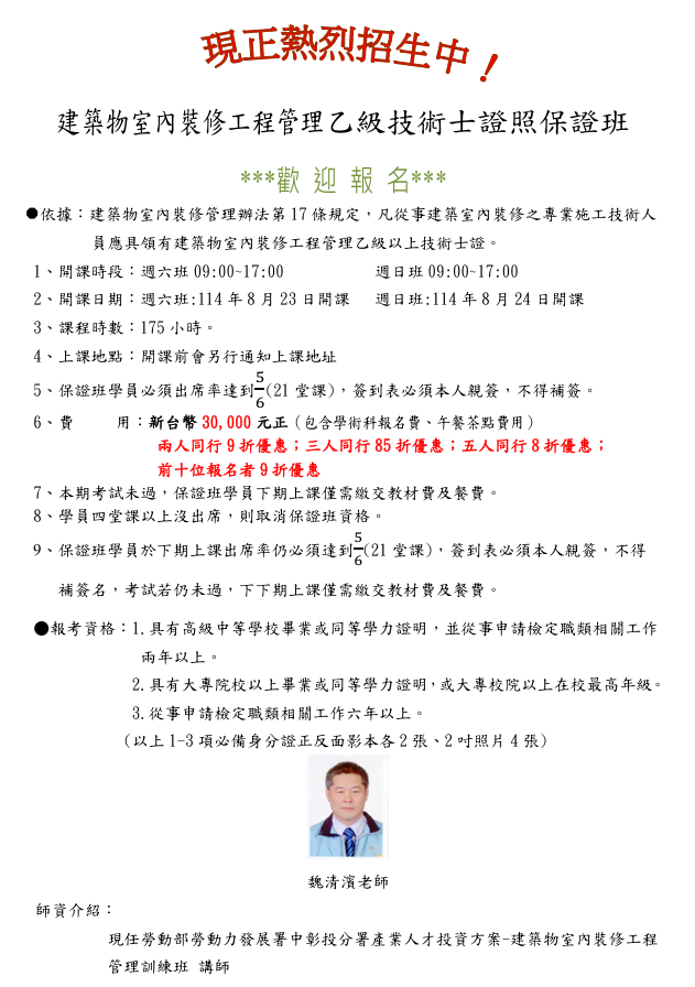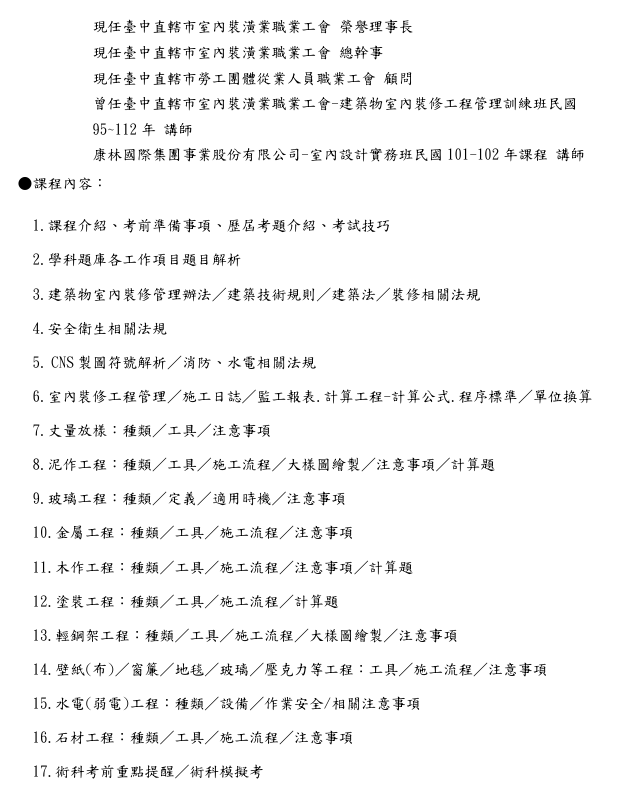 ●課程名稱:#建築物室內裝修工程管理乙級技術士證照保證班